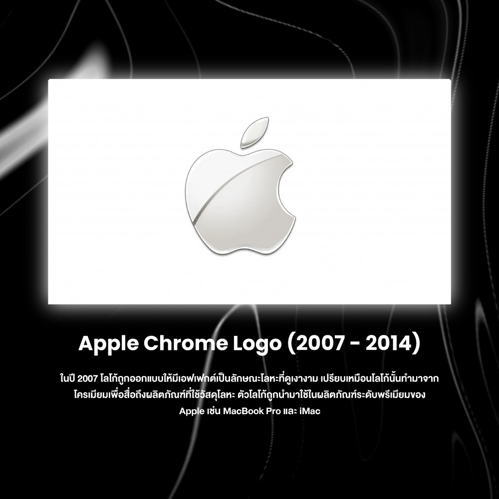 วันเวลาผ่านไป Apple ก็ยังคงมีการเปลี่ยนแปลงโลโก้เรื่อยๆ ในปี 2007 โลโก้ถูกออกแบบให้มีเอฟเฟกต์เป็นลักษณะโลหะที่ดูเงางาม เปรียบเหมือนโลโก้นั้นทำมาจากโครเมียมเพื่อสื่อถึงผลิตภัณฑ์ที่ใช้วัสดุโลหะ ตัวโลโก้ถูกนำมาใช้ในผลิตภัณฑ์ระดับพรีเมียมของ Apple เช่น MacBook Pro และ iMac เพื่อสื่อถึง ความหรูหรา ความแข็งแกร่ง และคุณภาพระดับสูง
