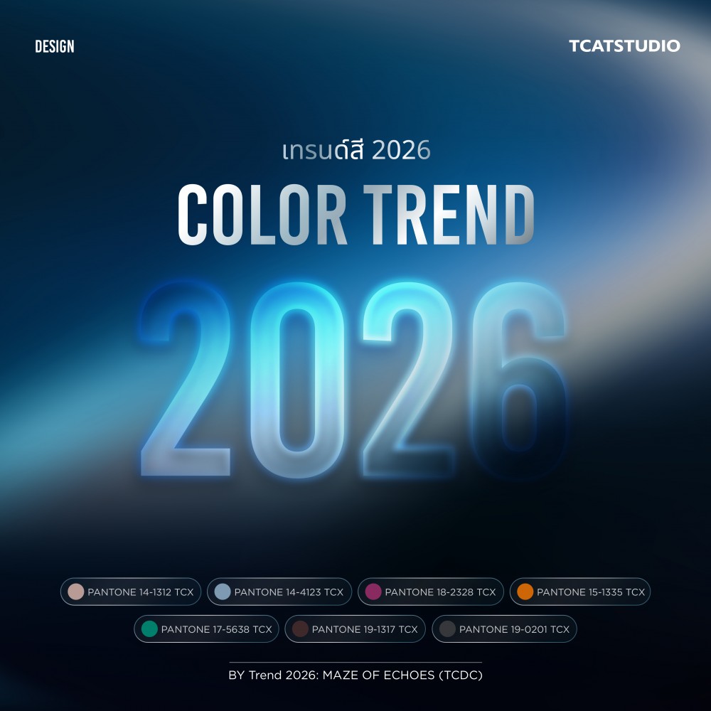 ผ่านไปอีก 1 ปี เทรนด์ต่างก็ผันแปร เทรนด์สีก็เปลี่ยนไปตามยุคสมัย ในปี 2026 TCDC ได้คาดว่าเทรนด์สีที่อาจจะมาแรงในปีนี้จะสะท้อนให้เห็นถึงการค้นหาทิศทางใหม่ ซึ่งจะมีสีอะไรกันบ้าง วันนี้ Tcatstudio ได้รวบรวมมาฝากกันค่ะ
