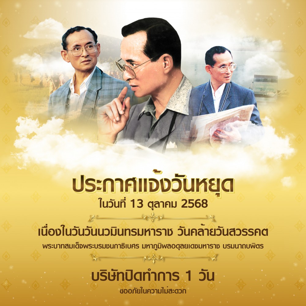 TCATSTUDIO แจ้งวันหยุดเนื่องในวันวันนวมินทรมหาราช